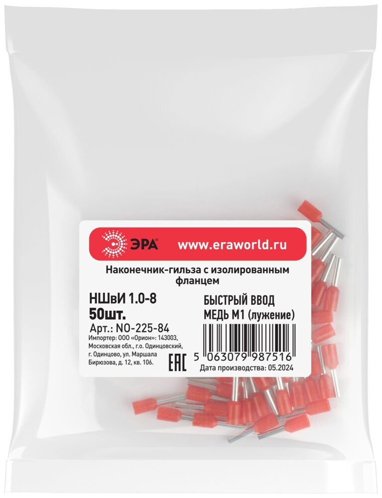 Полное описание товара Наконечник-гильза с изолированным фланцем (упаковка 50 шт.) NO-225-84 НШвИ 1,0-8 (ЭРА) Б0063387