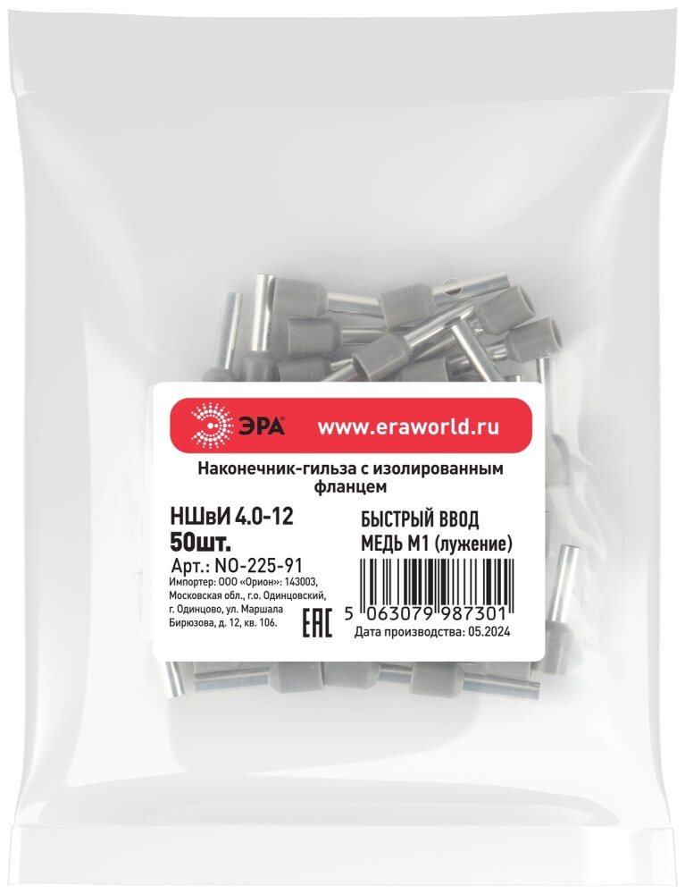 Полное описание товара Наконечник-гильза с изолированным фланцем (упаковка 50 шт.) NO-225-91 НШвИ 4,0-12 (ЭРА) Б0063411