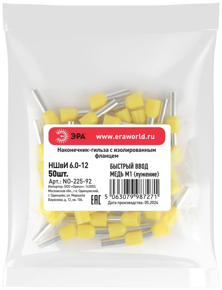 Наконечник-гильза с изолированным фланцем (упаковка 50 шт.) NO-225-92 НШвИ 6,0-12 (ЭРА) Б0063412