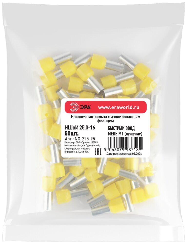 Наконечник-гильза с изолированным фланцем (упаковка 50 шт.) NO-225-95 НШвИ 25,0-16 (ЭРА) Б0063415