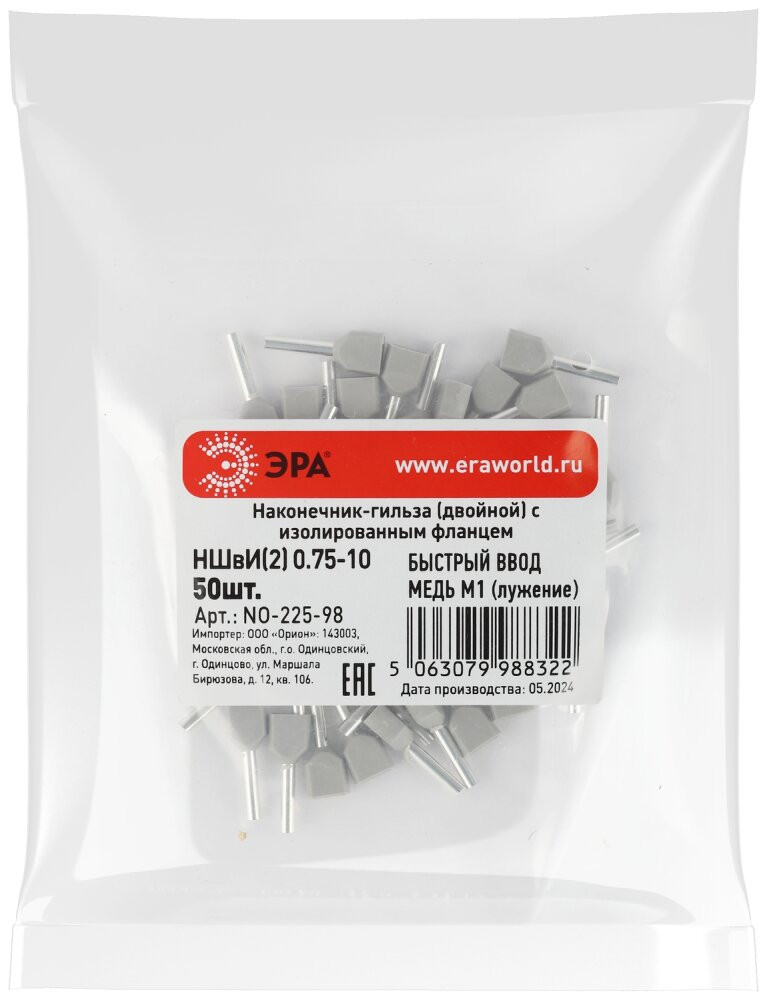 Полное описание товара Наконечник-гильза с изолированным фланцем (упаковка 50 шт.) NO-225-98 НШвИ(2) 0,75-10 (ЭРА) Б0063272