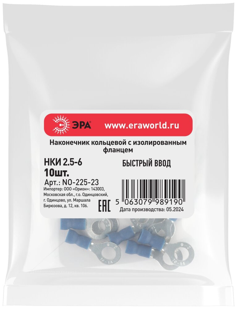 Полное описание товара Наконечник кольцевой с изолированным фланцем (упаковка 10 шт.) NO-225-23 НКИ 2.5-6 (ЭРА) Б0063308