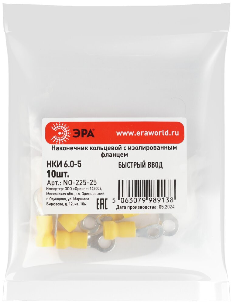 Наконечник кольцевой с изолированным фланцем (упаковка 10 шт.) NO-225-25 НКИ 6.0-5 (ЭРА) Б0063258