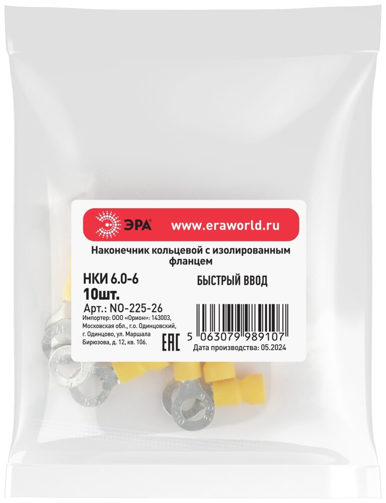 Полное описание товара Наконечник кольцевой с изолированным фланцем (упаковка 10 шт.) NO-225-26 НКИ 6.0-6 (ЭРА) Б0063315