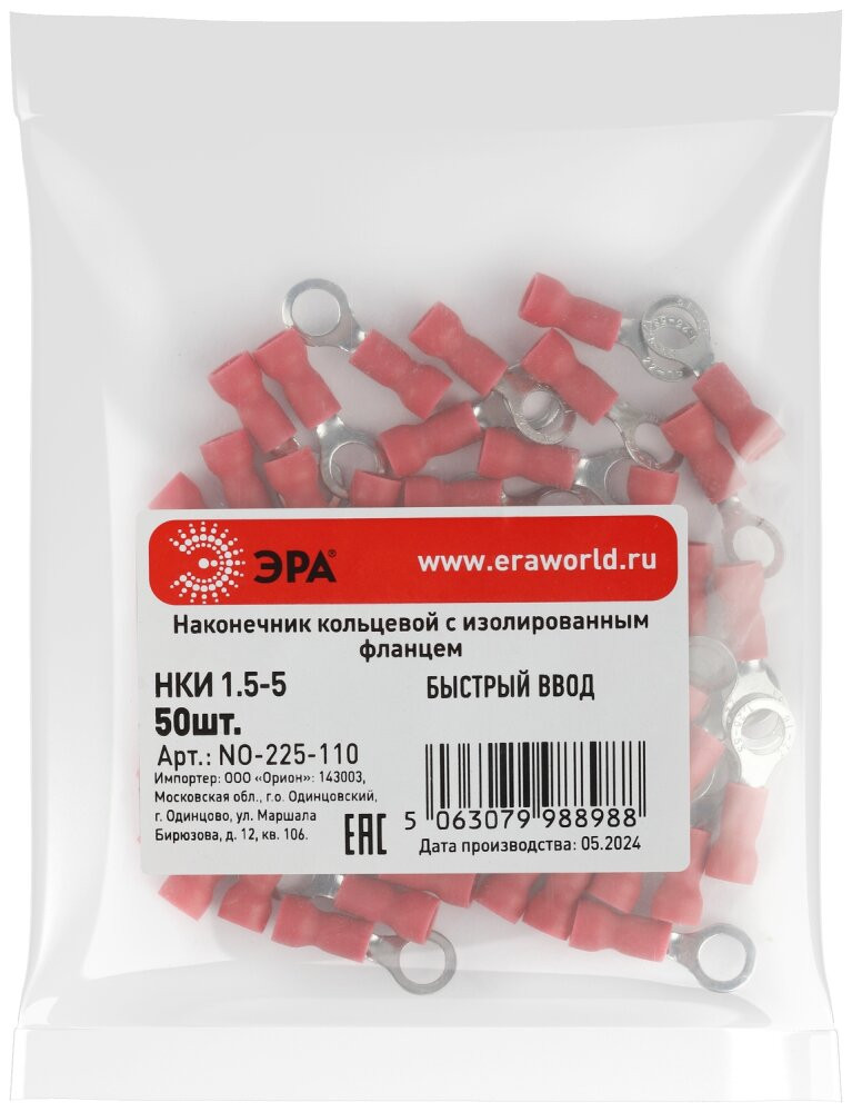 Наконечник кольцевой с изолированным фланцем (упаковка 50 шт.) NO-225-110 НКИ 1.5-5 (ЭРА) Б0063285