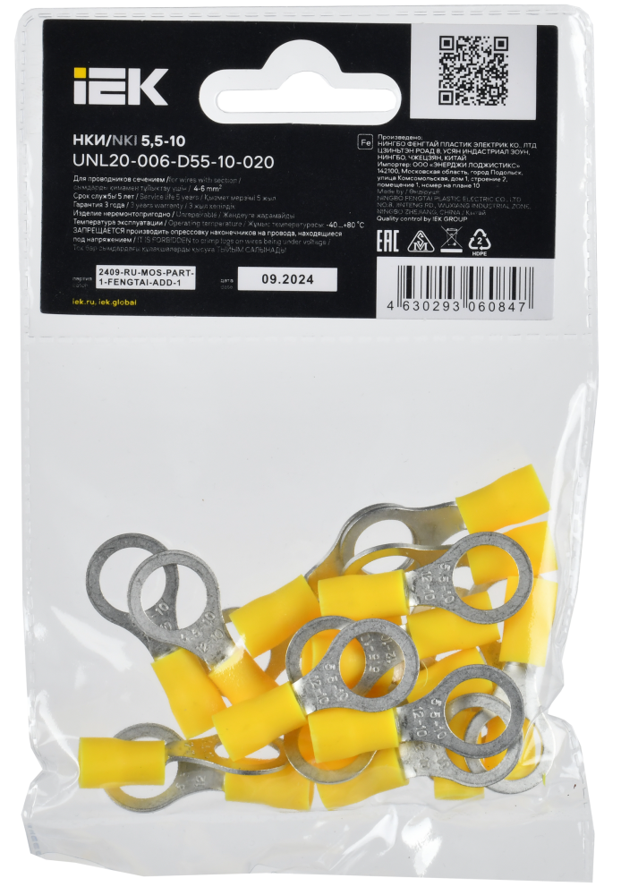 Полное описание товара Наконечник НКИ 5,5-10 кольцо 4-6мм (20шт/упак) IEK (IEK) UNL20-006-D55-10-020