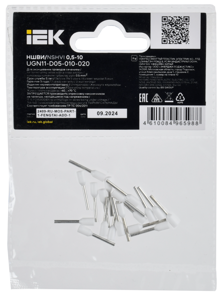 Полное описание товара Наконечник НШВИ 0,5-10 белый (20шт/упак) IEK (IEK) UGN11-D05-010-020