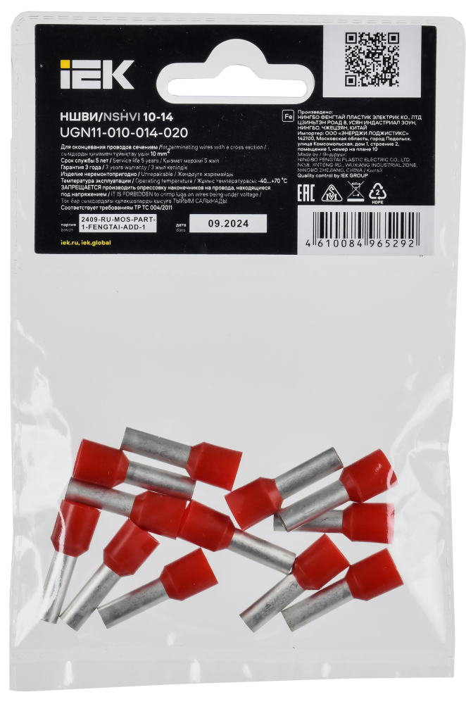 Полное описание товара Наконечник НШВИ 10-14 темно-красный (20шт/упак) IEK (IEK) UGN11-010-014-020