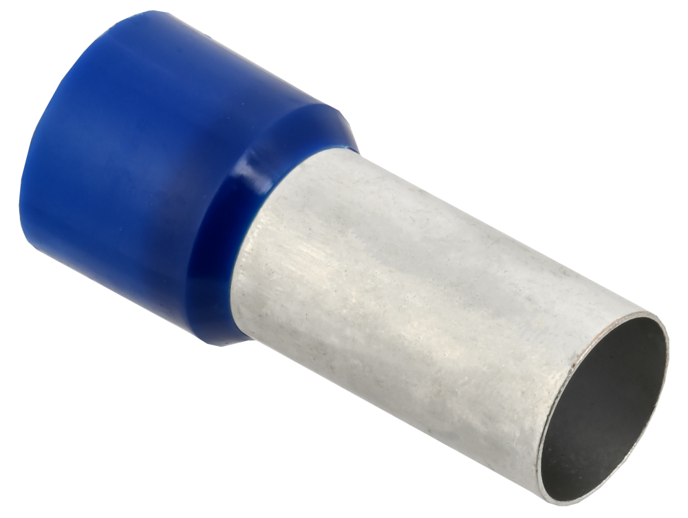 Наконечник штыревой втулочный предназаначен для оконцевания опрессовкой проводов с медными жилами в электрических цепях переменного и постоянного тока. Коническая форма манжеты, тип ''Easy Entry'', облегчает заведение многожильного провода внутрь медной втулки.