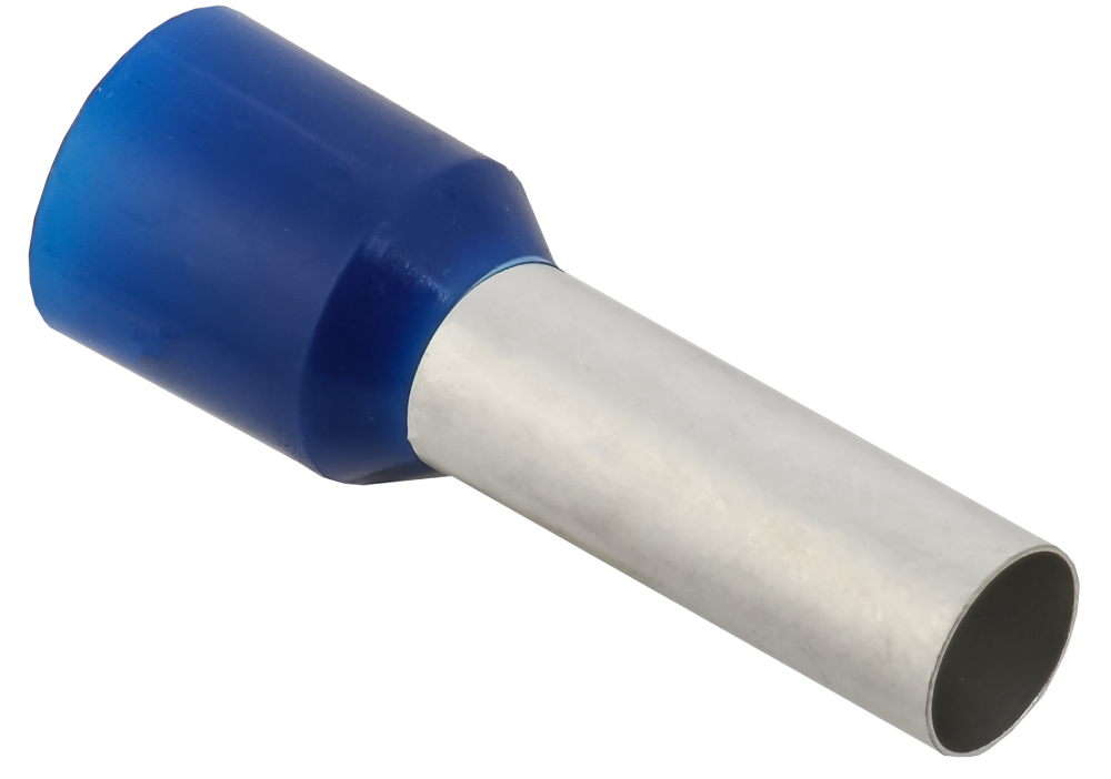 Наконечник штыревой втулочный предназаначен для оконцевания опрессовкой проводов с медными жилами в электрических цепях переменного и постоянного тока. Коническая форма манжеты, тип ''Easy Entry'', облегчает заведение многожильного провода внутрь медной втулки.