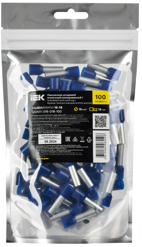 Полное описание товара Наконечник НШВИ 16-18 темно-синий (100шт/упак) IEK (IEK) UGN11-016-018-100