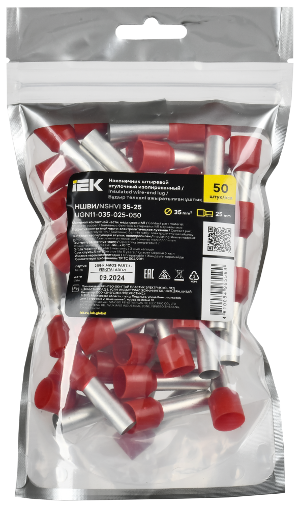 Полное описание товара Наконечник НШВИ 35-25 темно-красный (50шт/упак) IEK (IEK) UGN11-035-025-050