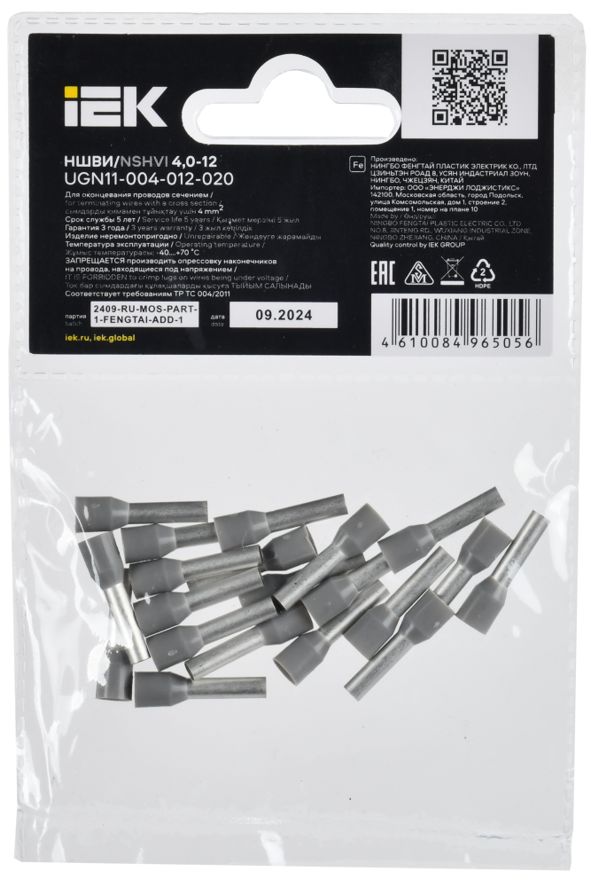 Полное описание товара Наконечник НШВИ 4,0-12 серый (20шт/упак) IEK (IEK) UGN11-004-012-020