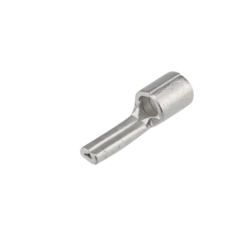 Наконечник кабельный медный штифтовой плоский (НШП) 10-12 (номинальное сечение наконечника мм.кв., длина контактной части мм). Сварной шов на участке контактного скругления под кабельную жилу делает трубную часть монолитной и гарантирует надежность опрессовки. Плоский штифт имеет рельефные насечки, обеспечивающие надежную фиксацию в прижимной клемме. Соединитель одного типоразмера возможно использовать на несколько сечений жил кабеля. Используются для подключения к выводам автоматических выключателей и прочим электрическим устройствам с ограниченной шириной контактной клеммы.