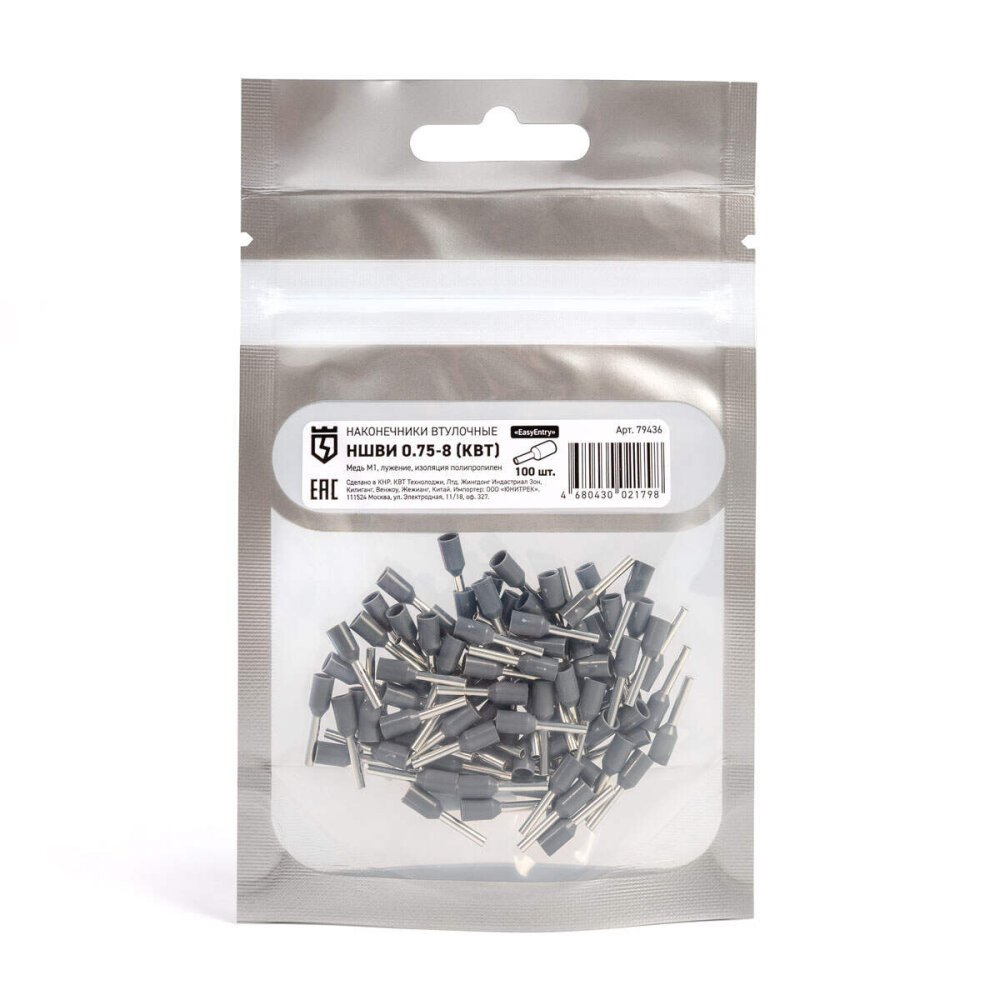 Наконечник штыревой втулочный изолированный НШВИ 0.75-8 серия ЕВРО (100 шт) (КВТ) 103198