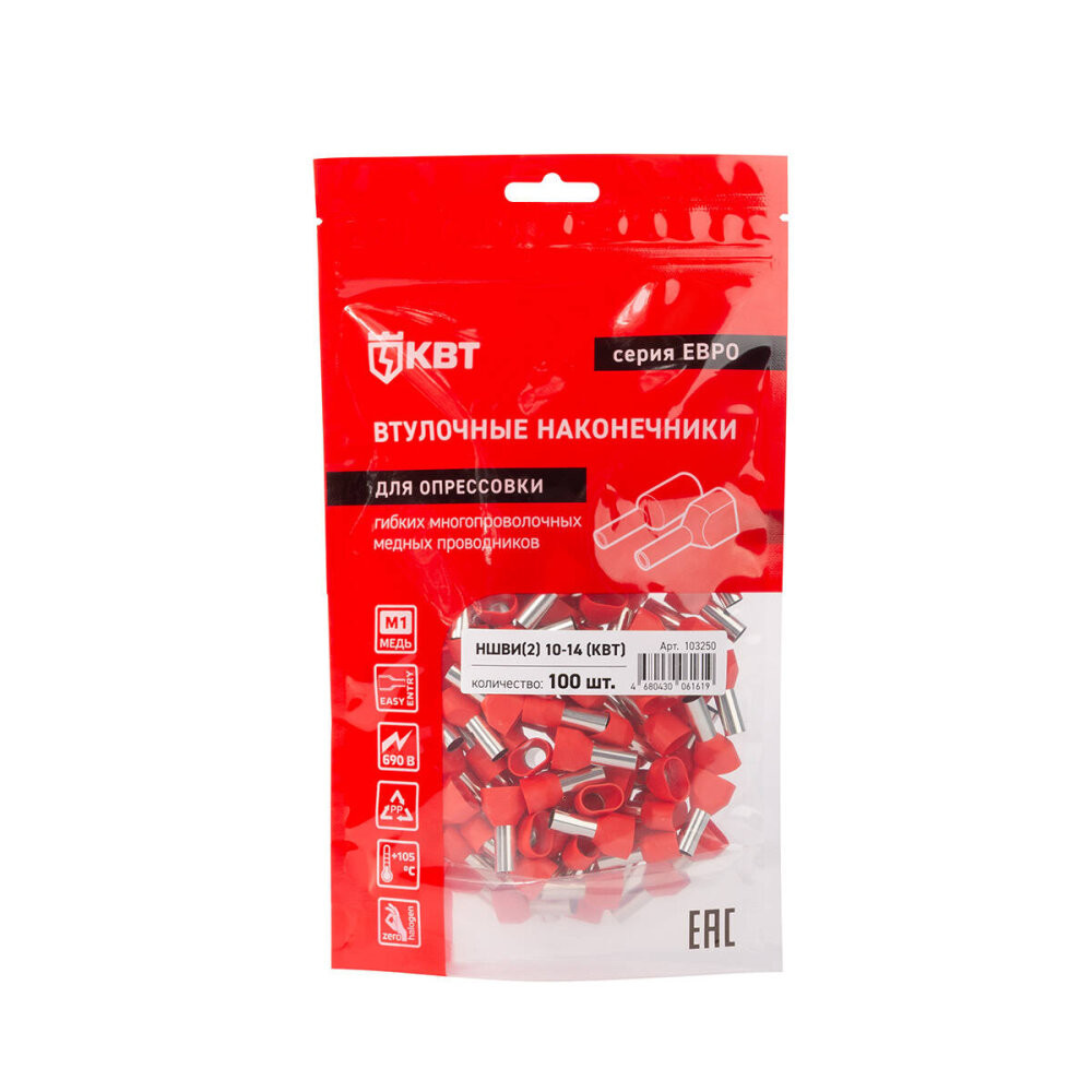 Наконечник штыревой втулочный изолированный НШВИ(2) 10-14 серия ЕВРО (100 шт) (КВТ) 103250