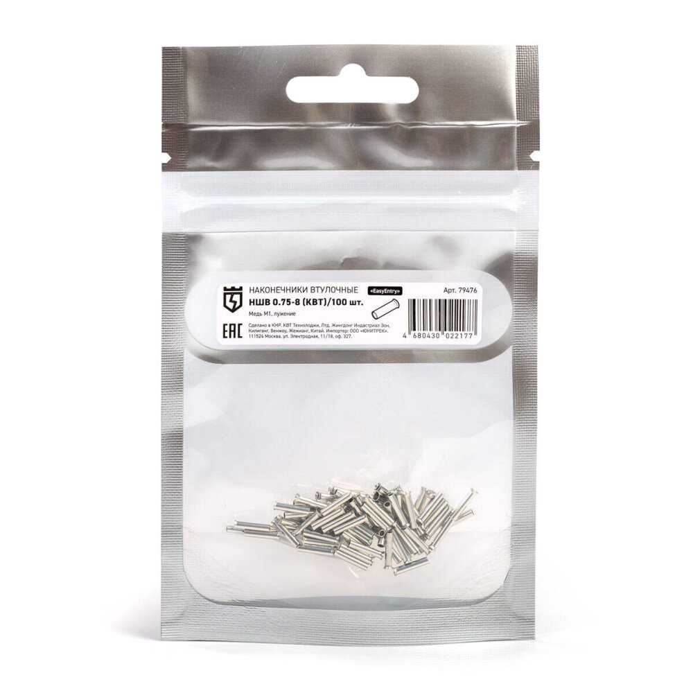 Полное описание товара Наконечник штырьевой втулочный НШВ 0.75-8 (500 шт) (КВТ) 79476