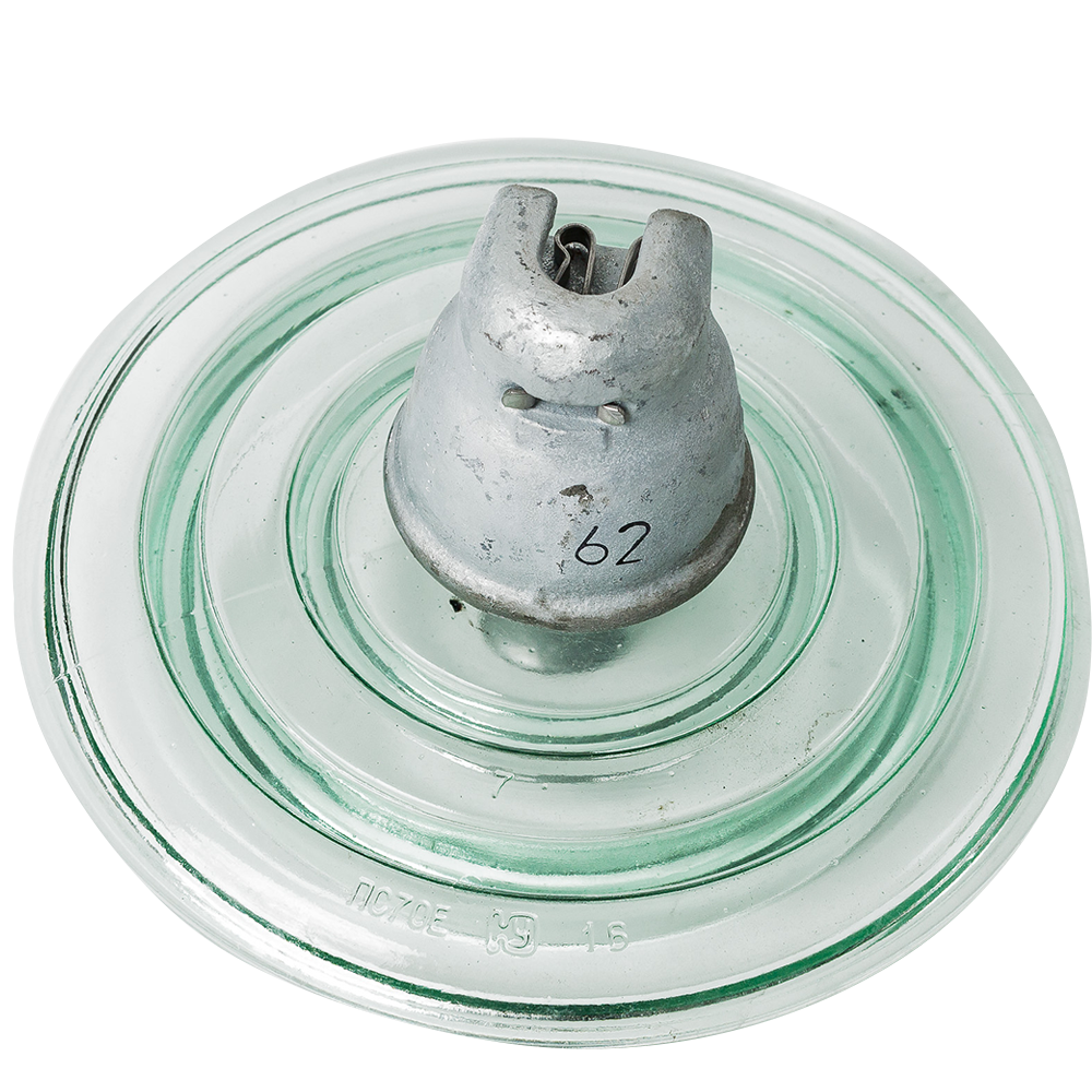 - Преимущества: Отличается конструктивным исполнением - в верхней части стеклянной ''тарелки'' имеют дополнительное ребро (выступ), увеличивающий длину пути утечки. | Цилиндрическая ''юбка'' изолятора в нижней части переходит в конус, что также увеличивает длину пути утечки. | Высокие диэлектрические свойства. | Не подвержены старению под действием ультрафиолетового излучения.