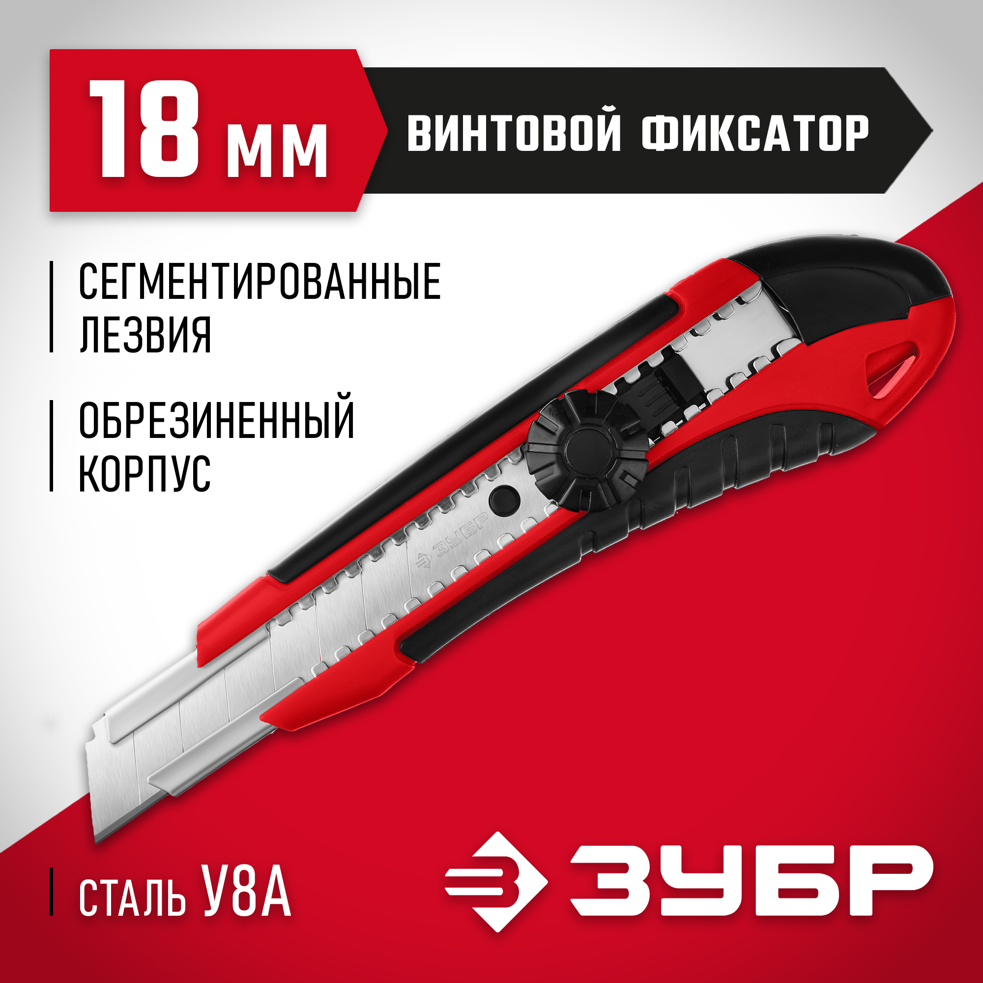 Полное описание товара Нож с винтовым фиксатором М-18В, сегмент. лезвия 18 мм, (ЗУБР) 09158_z01
