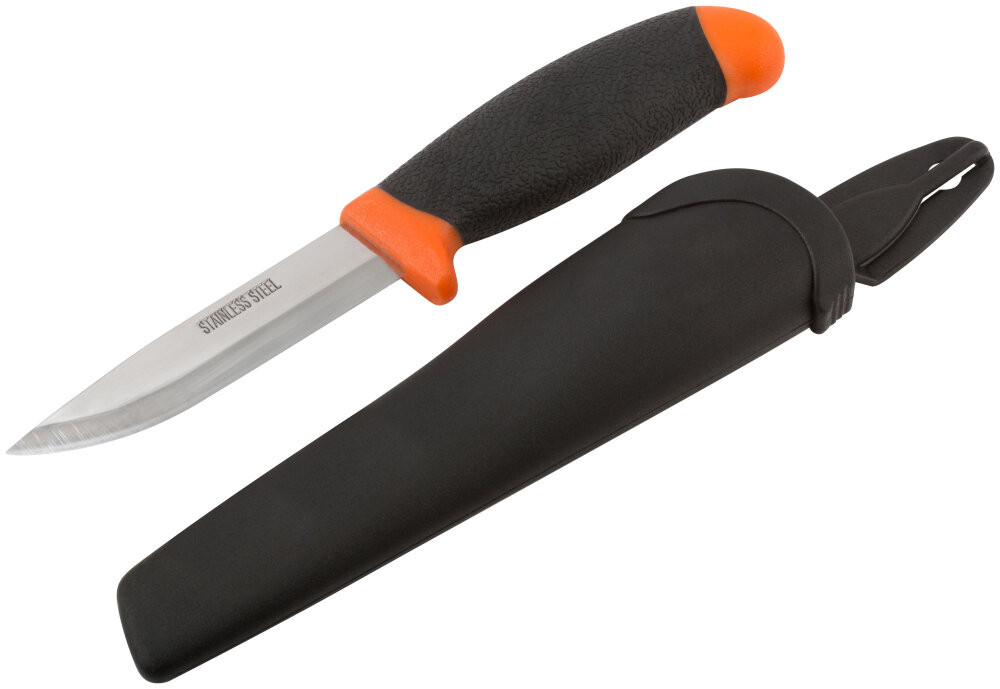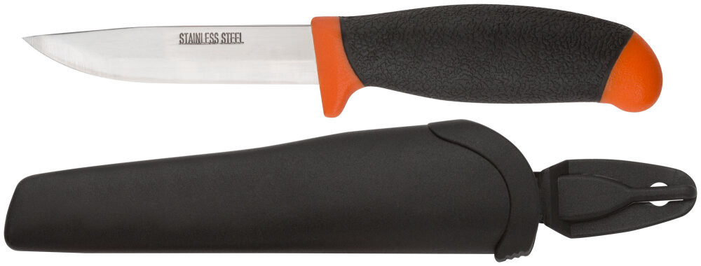 - Преимущества: лезвие изготовлено из износостойкой нержавеющей стали, не подверженной коррозии|заточенное лезвие обеспечивает высокую эффективность работ|эргономичная форма ручки обеспечивает надежный хват|резиновое покрытие ручки предотвращает проскальзывание во время работы|пластиковые ножны обеспечивают безопасность при транспортировке и хранении