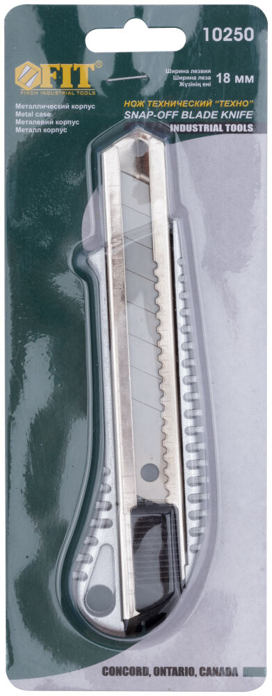 Полное описание товара Нож технический 18 мм усиленный, металлич.корпус (FIT) 10250