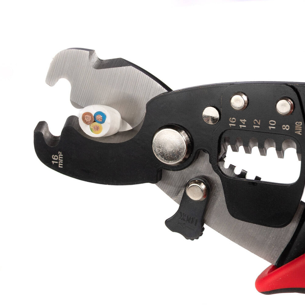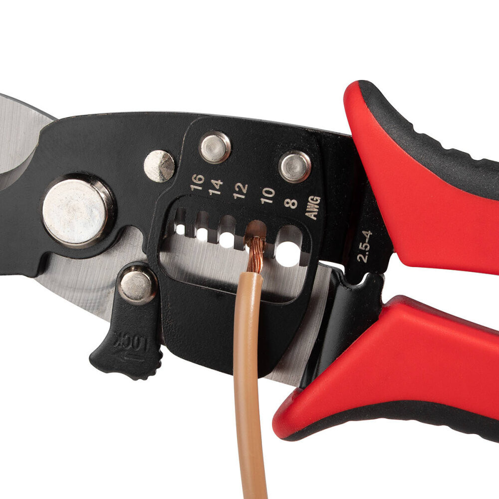 - Специальная выемка на лезвиях ножниц для снятия изоляции с проводов сечением 16 мм²