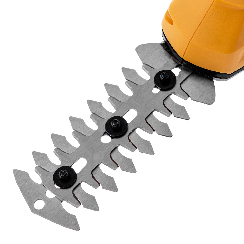 - Комплектация: Аккумуляторные садовые ножницы (со встроенным аккумулятором)-1 шт.|Режущий модуль для травы быстросъемный-1 шт.|Режущий модуль для кусторезов быстросъемные-1 шт.|Зарядное устройство-1 шт.|Руководство по эксплуатации с гарантийным талоном-1 шт