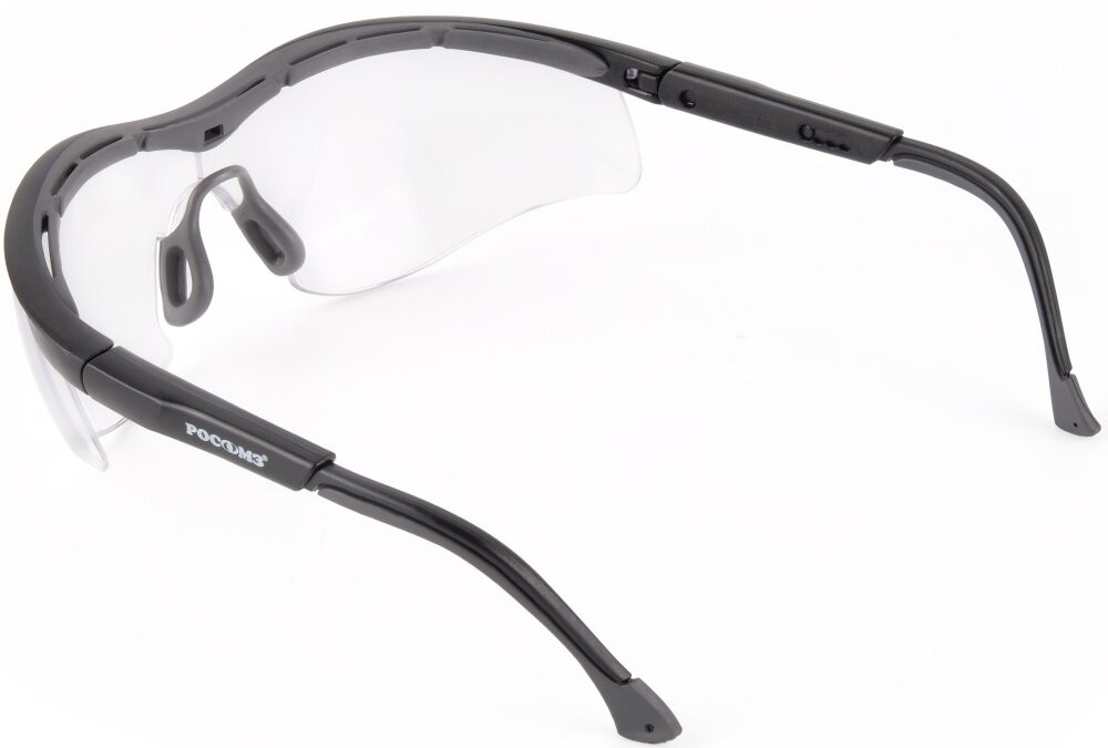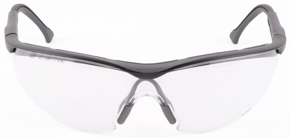СИЗ глаз для защиты от механических воздействий и неионизирующих излучений, капель и брызг жидкостей. Очки открытые с мягкой вставкой из ТЭП в области лба, двухкомпонентными регулируемыми по длине и углу наклона заушниками с мягкими вставками из ТЭП защищают от высокоскоростных летящих частиц с низкоэнергетическим ударом 0,84 Дж. Стекло из бесцветного поликарбоната с покрытием CRYSTALINE (с внешней стороны сверхтвердое химостойкое покрытие, устойчивое к истиранию и царапинам, с внутренней стороны покрытие устойчивое к запотеванию. Покрытие высокого качества сохраняет свои свойства при сверх интенсивной эксплуатации, в т.ч. при работе с абразивами и загрязняющими веществами). Оптический класс 1. Защитные свойства – 2С-1,2 RZ 1 FT K N — RZ 253 FT. Очки можно мыть и дезинфицировать. Модель оснащена мягким носоупором из ТЭП. Дополнительно могут комплектоваться шнурком для очков (арт. 00809) и футляром (арт. 00821). Возможно применять с противошумными наушниками, каской и каскеткой.
