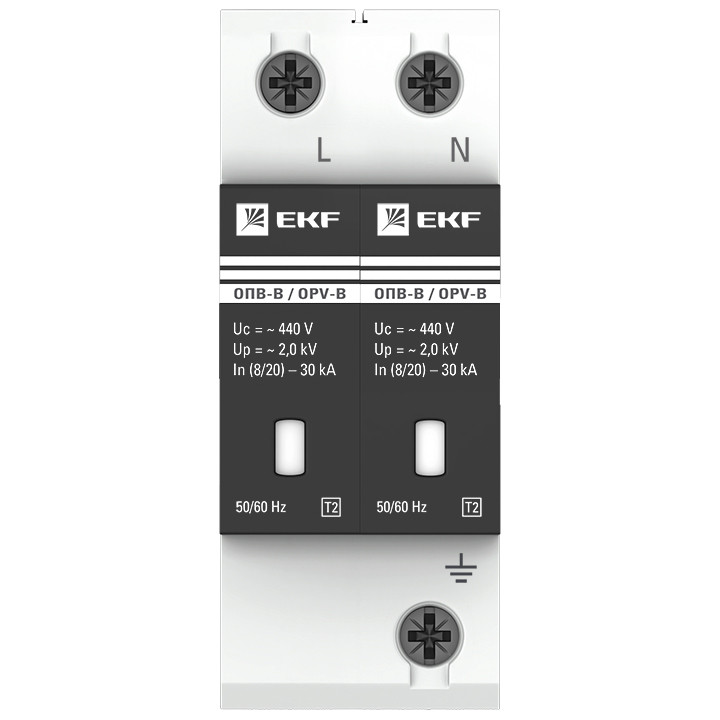 Полное описание товара Ограничитель перенапряжений ОПВ-B 2P (EKF) opv-b2