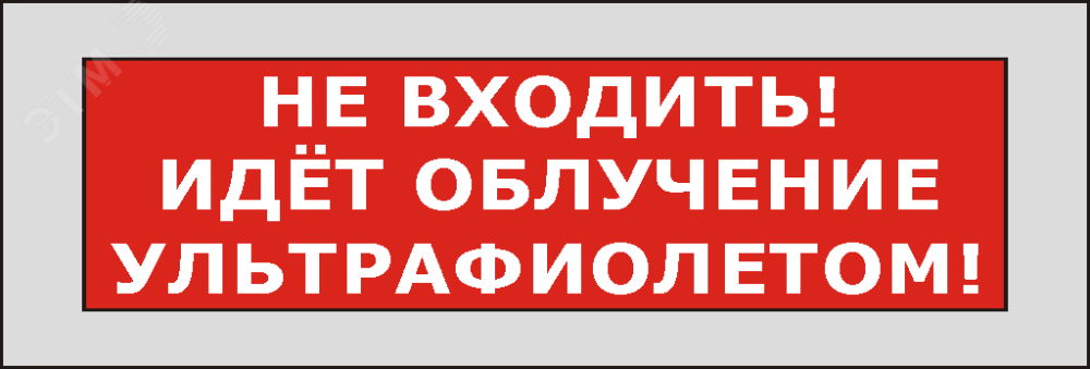 - Текст надписи: Не входить! идет облучение ультрафиолетом!