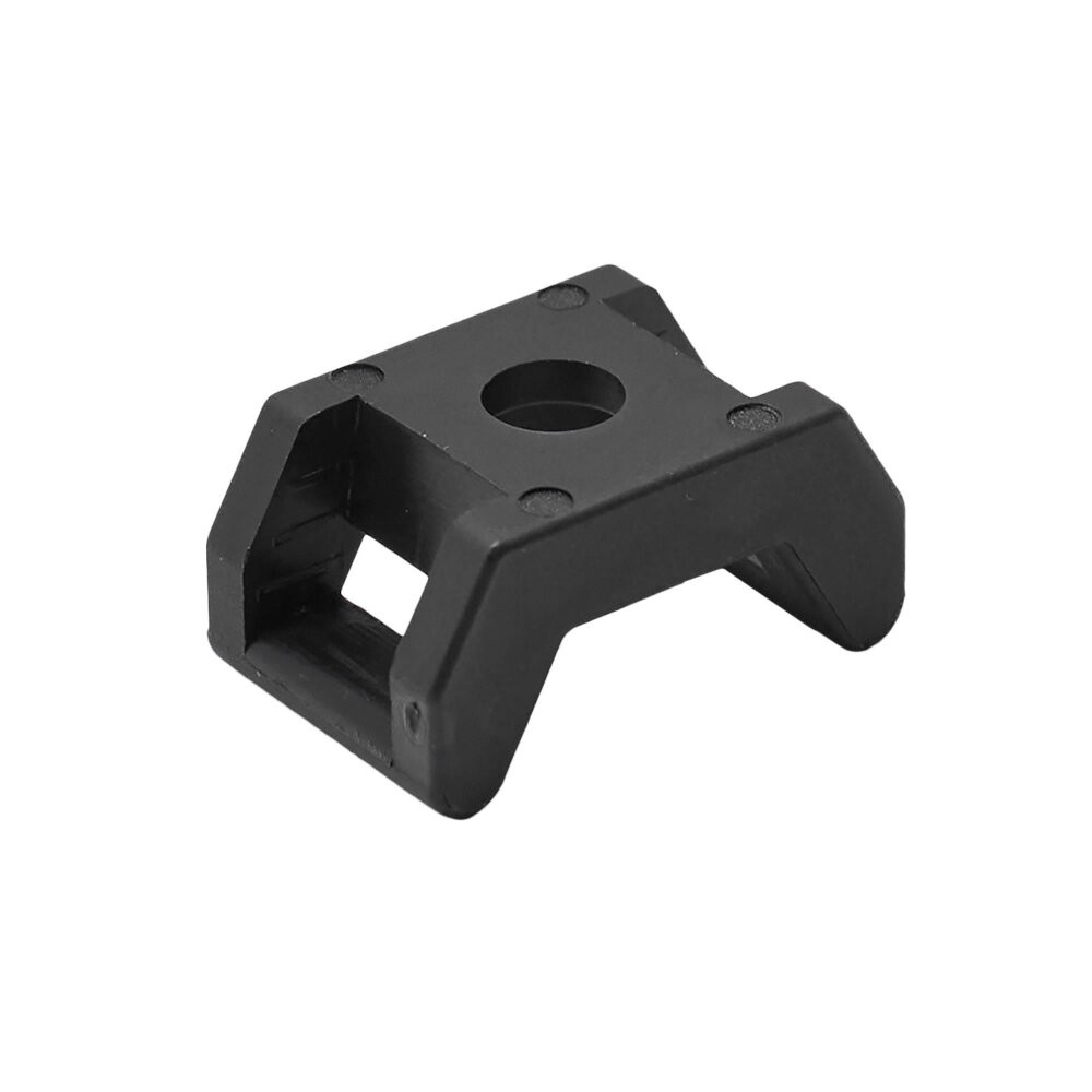 Основание для фиксации стяжки предназначена для быстрого и удобного монтажа пучков проводов, стянутых хомутом, к любой поверхности с помощью метиза. Подходит как для временной, так и для постоянной фиксации проводов. Материал – полиамид 6.6. Для хомута шириной – 9 мм. Крепежное отверстие – М5. Размеры – ширина - 14,4 мм, длина - 21,9 мм, высота - 11 мм. Цвет – черный.