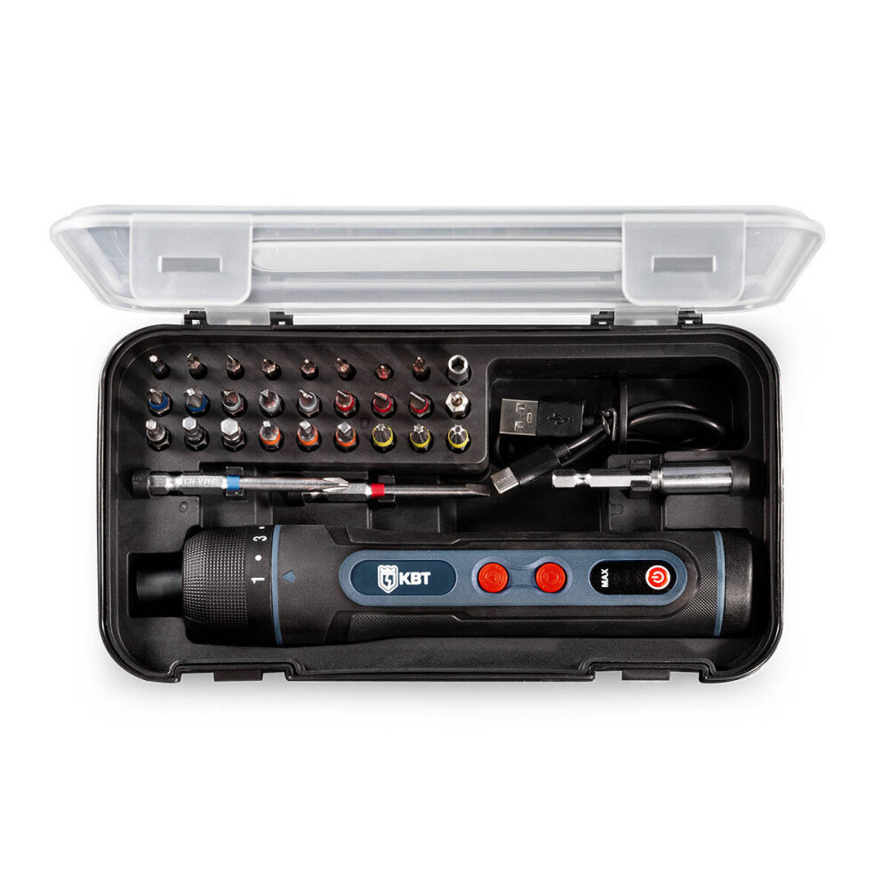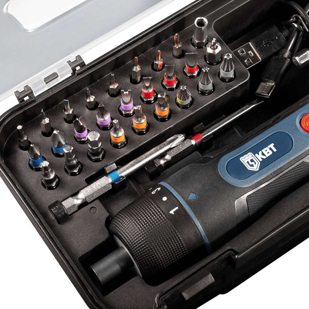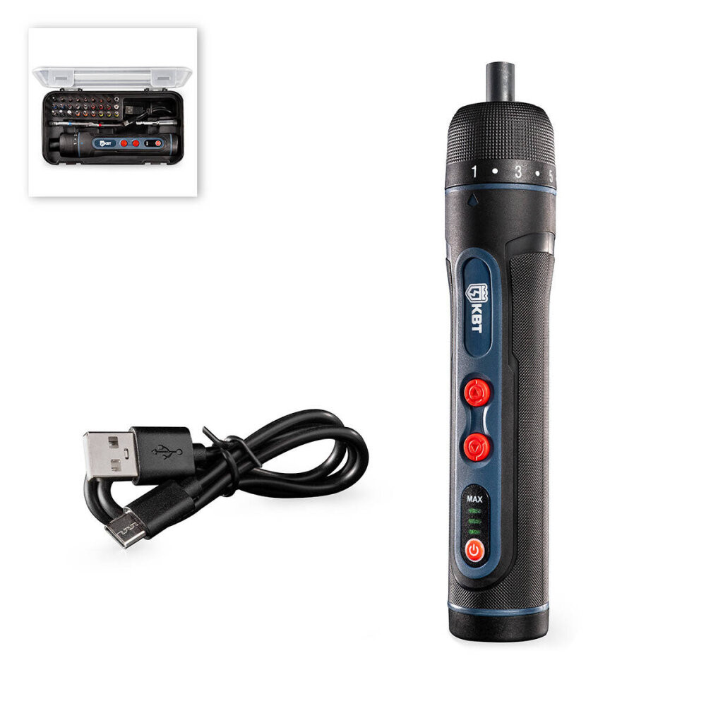 - Комплектация: ◦ отвертка аккумуляторная SD-4-5; ◦ адаптер для бит HEX 1/4” и HEX 4 мм; ◦ сменные биты (27 шт.): - биты HEX 1/4” 25 мм: PH1, PH2, SL3, SL4, SL5, H3, H4, H5, T10, T15, T20, S0, S1, S2, U6.0, Y2, ТА2.3; - биты HEX 1/4” 65 мм: SL5, PH2; - биты HEX 4 мм 28 мм: SL1.5, SL2.0, PH000, PH00, PH0, ТS1.2, TS0.8, H2.0 ; ◦ бита-сверло HEX 1/4” 25 мм Ø 2 мм; ◦ USB Type-C кабель