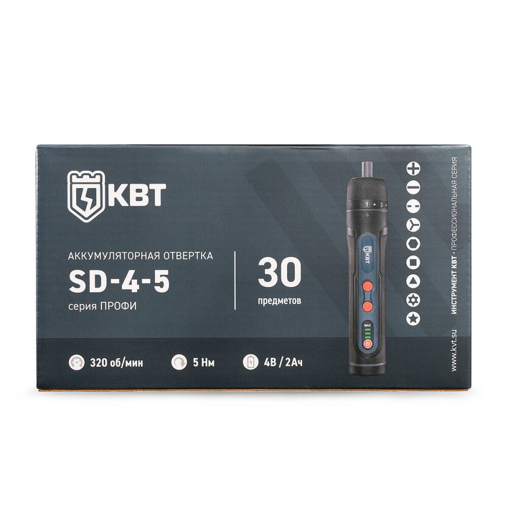 Полное описание товара Отвертка аккумуляторная SD-4-5 серия ПРОФИ (КВТ) 105417