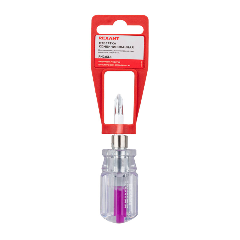 Полное описание товара Отвертка комбинированная, двухсторонний стержень 40 мм (REXANT) 12-4743