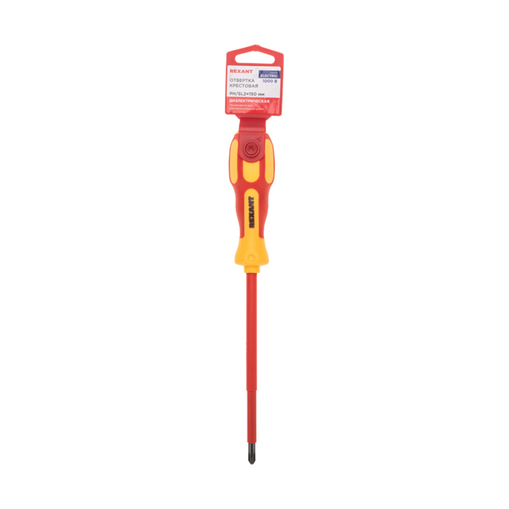 Отвертка крестовая диэлектрическая PH/SL2х150мм, до 1000В, двухкомпонентная рукоятка (REXANT) 12-4719