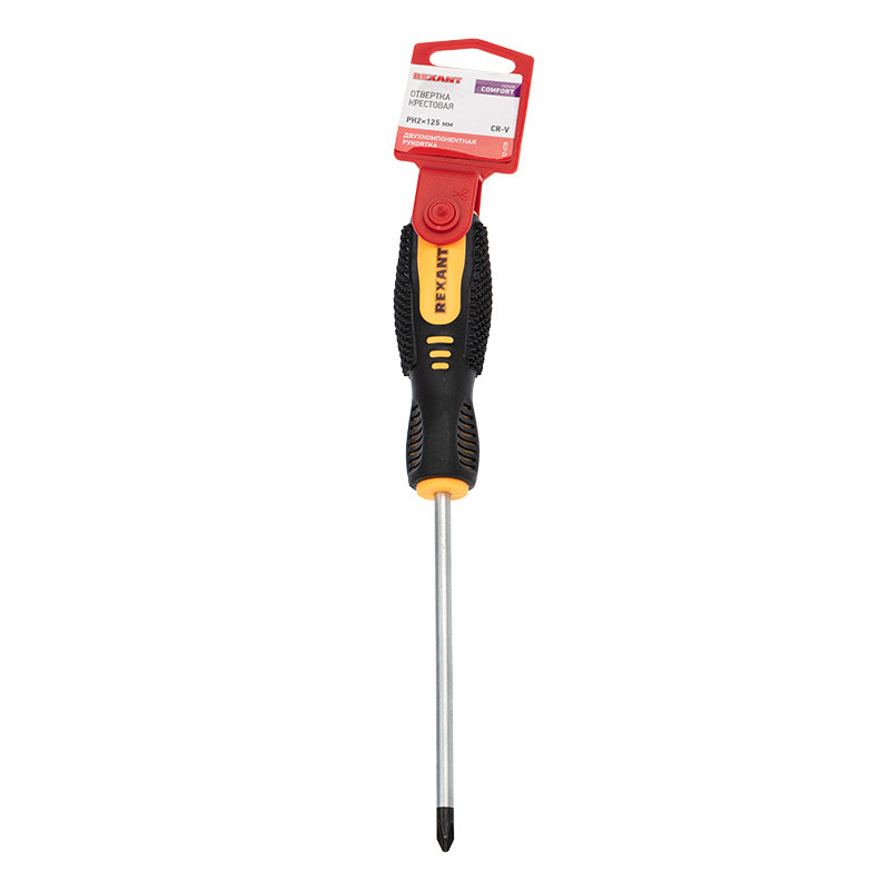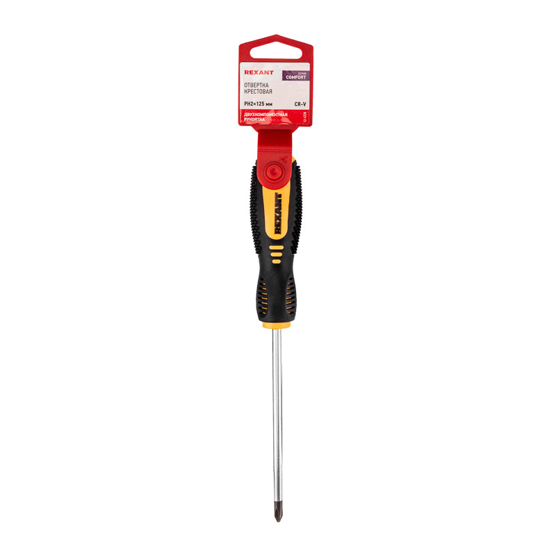 Полное описание товара Отвертка крестовая PH2х125 мм, двухкомпонентная рукоятка (REXANT) 12-4728