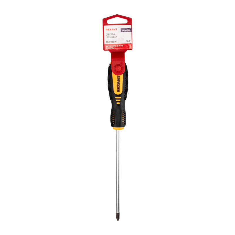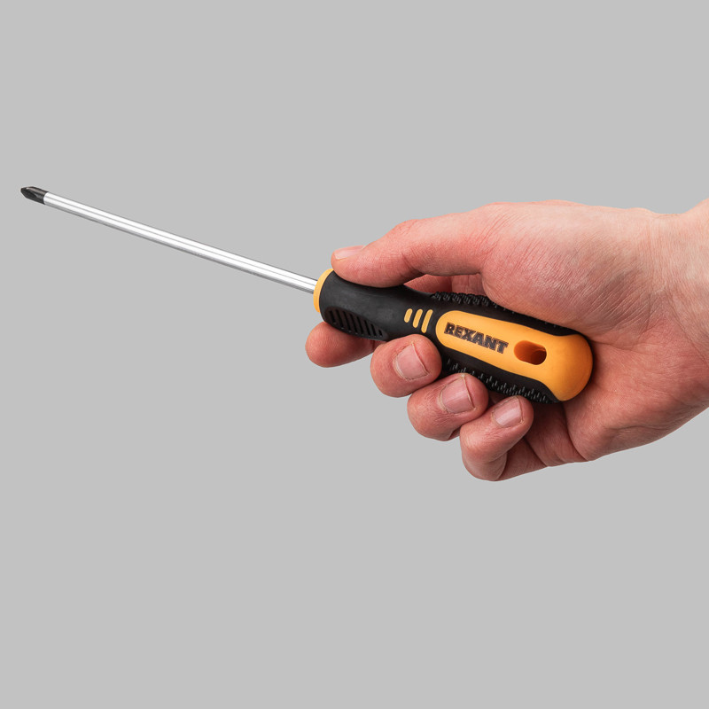 Полное описание товара Отвертка крестовая PH2х150 мм, двухкомпонентная рукоятка (REXANT) 12-6408