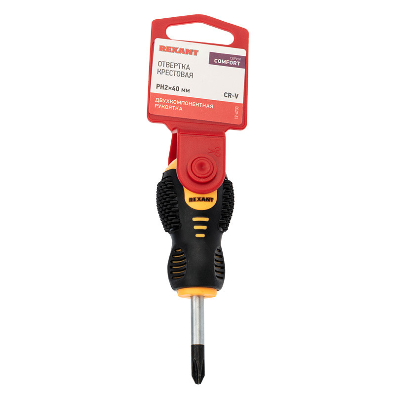 Полное описание товара Отвертка крестовая PH2х40 мм, двухкомпонентная рукоятка (REXANT) 12-4730