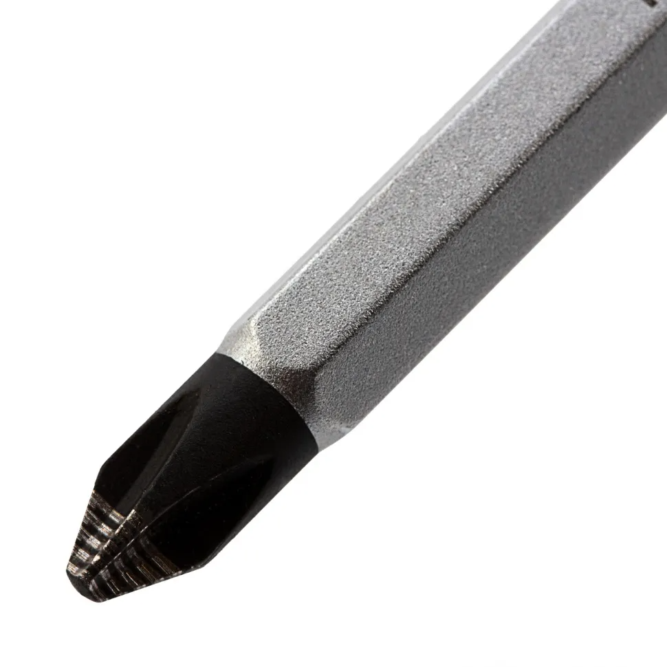 - Преимущества: Высокий ресурс - рабочая часть выполнена из японской легированной стали S2, закаленной до необходимой твердости|Улучшенное сцепление с крепежом - фосфатированный шлиц с лазерными насечками не проскальзывает и не допускает слизывание граней|Намагниченное жало - шлиц надежно фиксируется в головке крепежа, и его не нужно придерживать рукой|Расширенный функционал - дополнительный шестигранник под ключ позволяет увеличить прилагаемое усилие без риска поломки отвертки|Быстрый поиск нужного инструмента - на затыльнике рукоятки и стержне обозначены тип шлица и длина стержня|Эргономичность - трехкомпонентная рукоятка обеспечивает надежный хват и способствует снижению усталости в руках