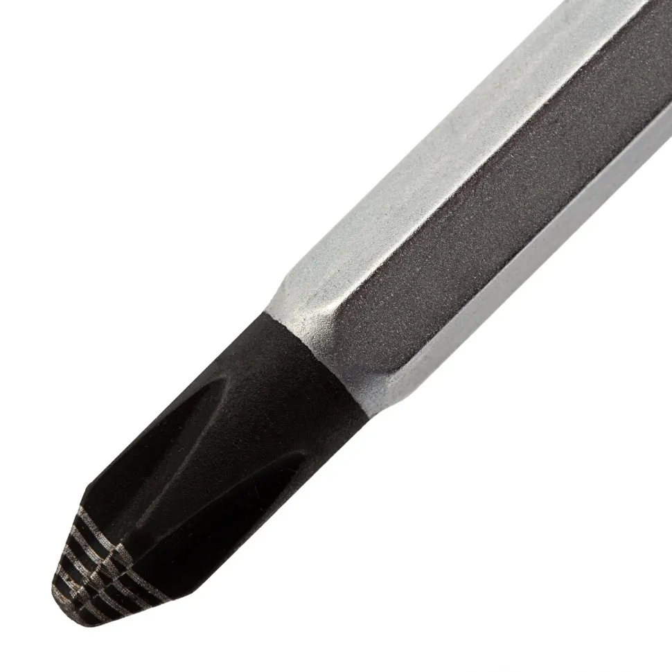- Преимущества: Высокий ресурс - рабочая часть выполнена из японской легированной стали S2, закаленной до необходимой твердости|Улучшенное сцепление с крепежом - фосфатированный шлиц с лазерными насечками не проскальзывает и не допускает слизывание граней|Намагниченное жало - шлиц надежно фиксируется в головке крепежа, и его не нужно придерживать рукой|Расширенный функционал - дополнительный шестигранник под ключ позволяет увеличить прилагаемое усилие без риска поломки отвертки|Быстрый поиск нужного инструмента - на затыльнике рукоятки и стержне обозначены тип шлица и длина стержня|Эргономичность - трехкомпонентная рукоятка обеспечивает надежный хват и способствует снижению усталости в руках