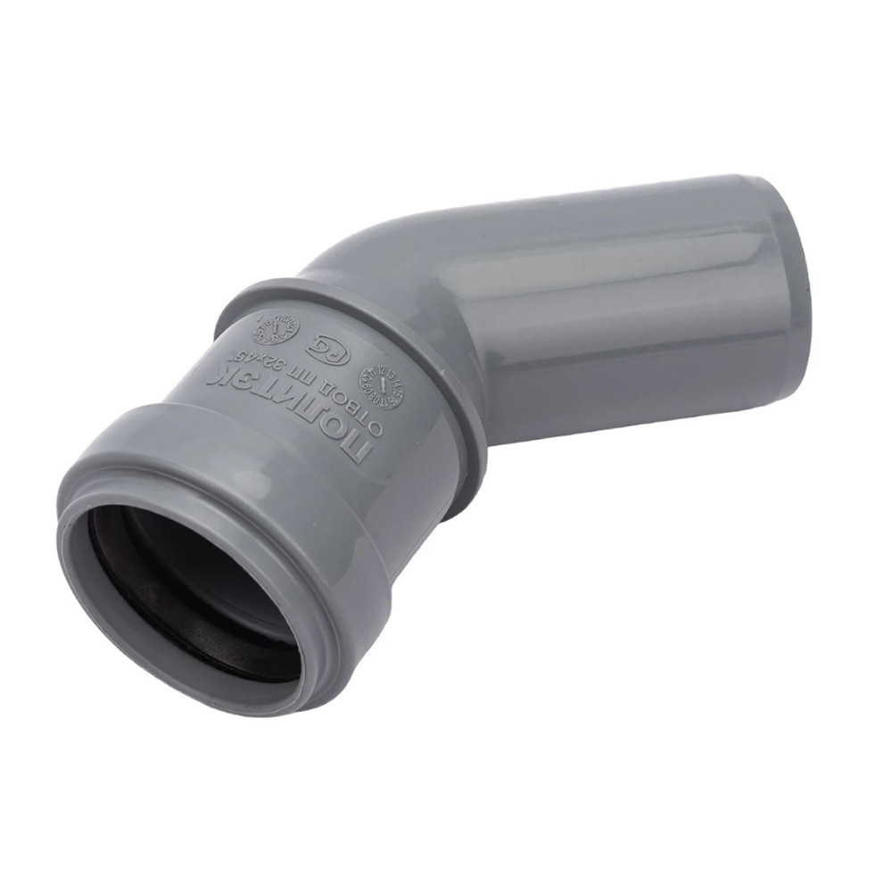 Полное описание товара Отвод 32 45 град, для внутренней канализации, серый (Политэк) 100345