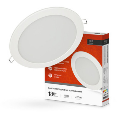 Полное описание товара Панель светодиодная встраиваемая круглая RLP 18Вт 230В 4000К 1080Лм 225мм белая IP40 IN HOME (IN-HOME) 4690612007984