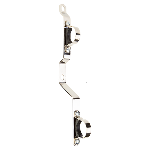 Кронштейны предназначены для крепления подающего и обратного коллекторов из нержавеющей стали MVI серий MS.5 и MS.4. Состоят из крепежной планки, к которой винтами крепятся два стальных никелированных хомута. В хомуты вставлены эластомерные уплотнители, служащие тепло- и виброзащитой. также они сохраняют поверхность коллекторов от механических повреждений. Кронштейны обеспечивают разнос коллекторов по высоте на 200 мм (между осями).