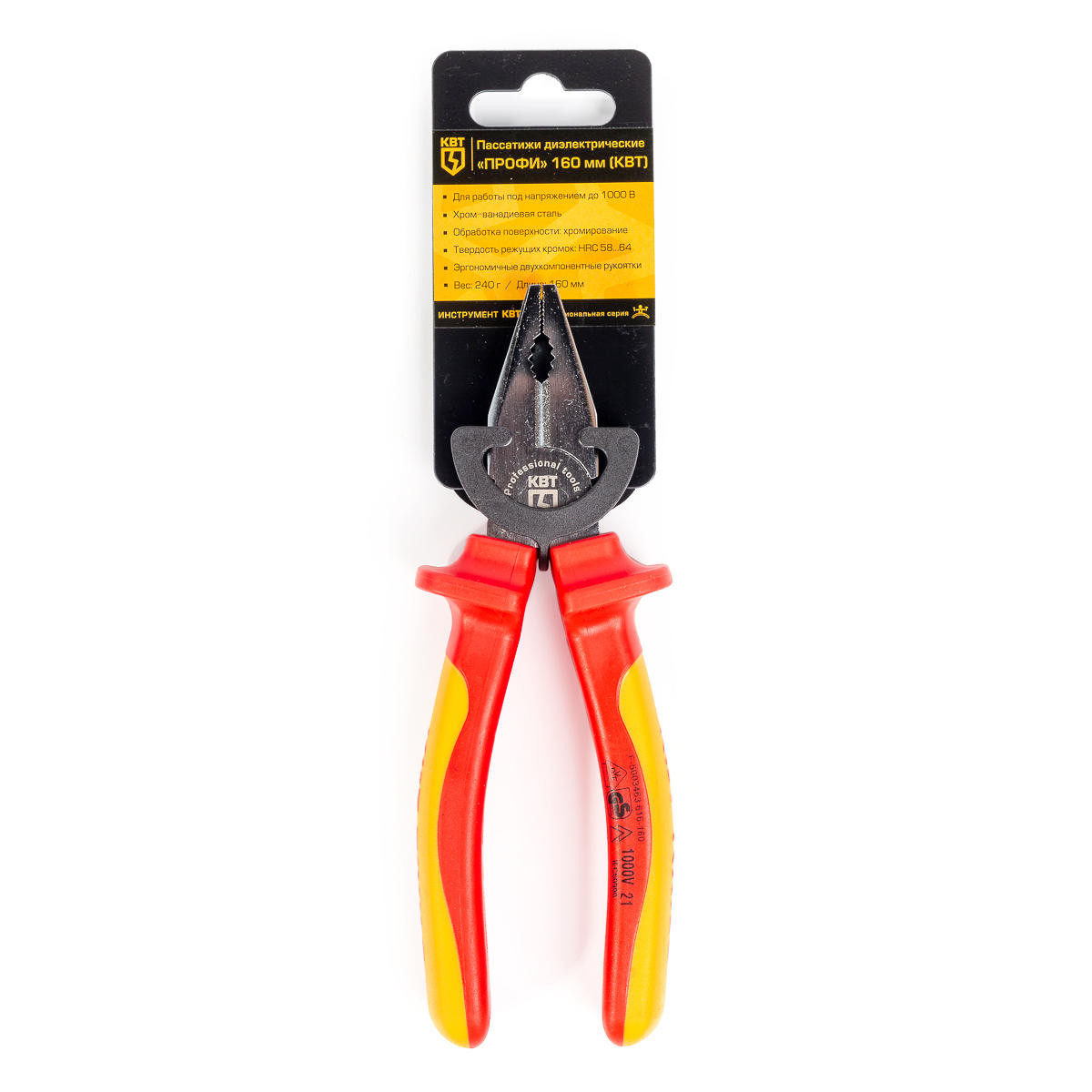 Пассатижи диэлектрические 160 мм серия ПРОФИ (КВТ) 67357