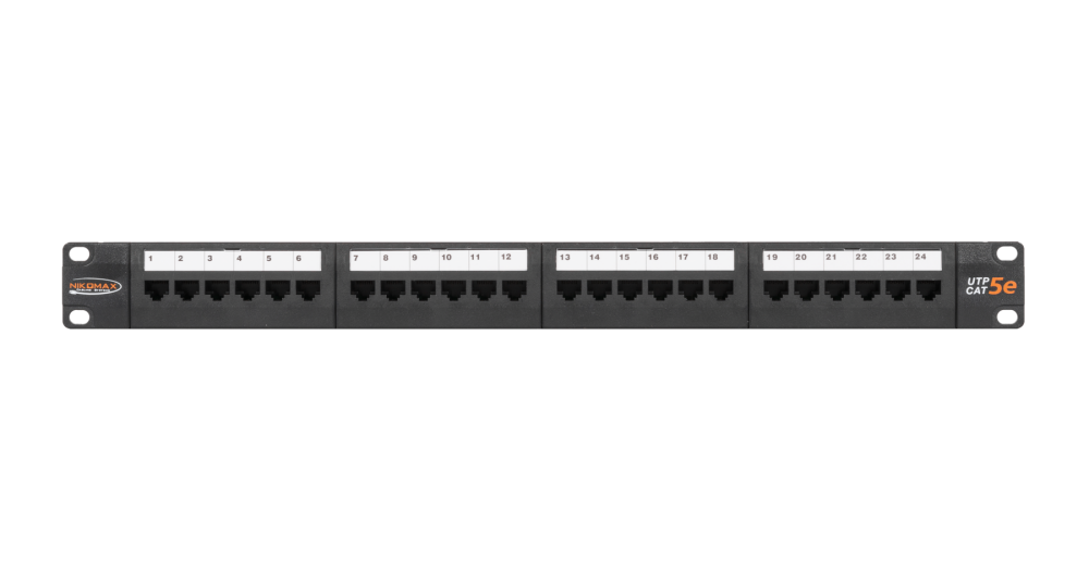 Патч-панель 19'' 1U 24 порта Кат 5e RJ45/8P8C UTP черная (NIKOMAX) NMC-RP24UD2-1U-BK