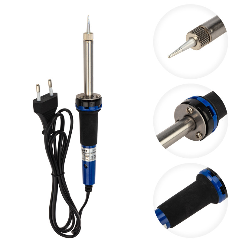 - Преимущества: Подходит для любительского и профессионального использования|Жало легко и быстро заменить|Паяльник оснащен ударопрочной и термостойкой рукояткой|Жало паяльника отличается долговечностью