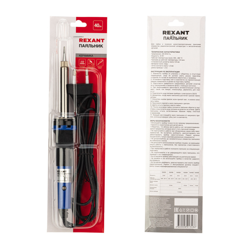 Паяльник МАСТЕР керамический нагреватель, долговечное жало, 40Вт, 230В (REXANT) 12-0123