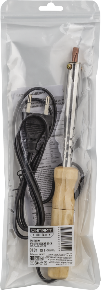 Полное описание товара Паяльник ОНЛАЙТ 90 197 OSE-Pes05-80W-CP (дерево, клин прямой) (ОНЛАЙТ) 90197