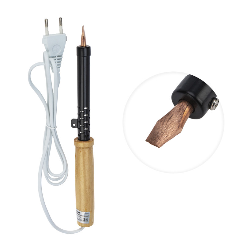 Паяльник с деревянной ручкой серии ЭПСН мощностью 100 Вт REXANT предназначен для ручного монтажа/демонтажа деталей среднего и крупного размера, а также для лужения. Медное жало выполнено в форме клина (лопатки), в случае необходимости его можно легко и быстро заменить (сменное жало в комплект не входит). Удобная эргономичная рукоятка выполнена из экологически чистого материала - дерева.