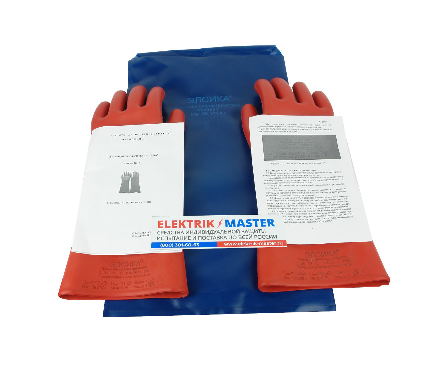 Перчатки диэлектрические ЭЛСИКА класс 1 до 7,5 кВ (Техношанс)